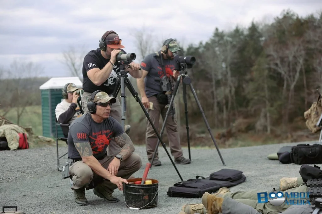 The instructors spotting for the students during a modified prone long range shooting portion of the LPVO class.